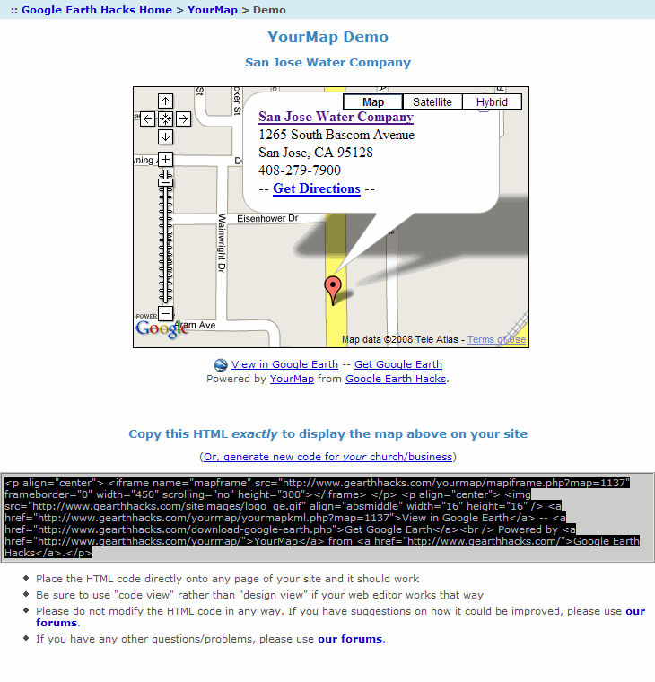 Unfortunately my blog doesn’t allow me to actually create my own HTML, so I can’t actually create the map to show you. However I did take a screen shot of the map so you can see how it looks.
